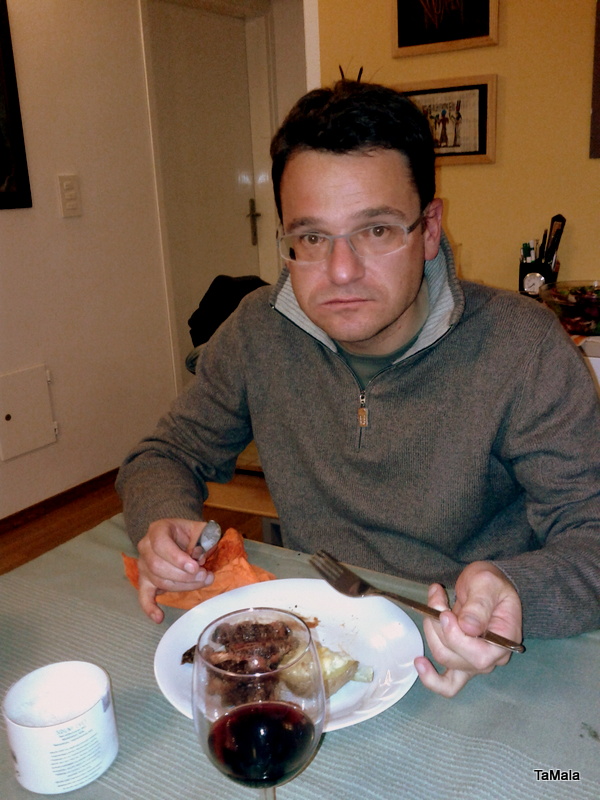 Le Grand Chef Gregi je poskrbel, da je govedo pripotovalo iz Argentine...že dobro uležano...potem je z organiziral žur in seveda kravo vrgu na roštilj, za kar je z asistenti (moškim delom povabljencev z atom na čelu) poskrbel, da je bil ogenj pravi...zraven meska paše krompirček in kruhek, za to je poskrbela moja malenkost...nekateri potrebujejo več vitaminčkov, zato je za solatke iz domačega vrta poskrbela zlata mami...za vino je v navodilih pisalo, da mora vsak po svoji kleti mjčkn pobrskat, tako da ne vem natančno od kod se je znašlo, vem pa da je bilo...in še sladička, vrhunski piškotki od Monike...